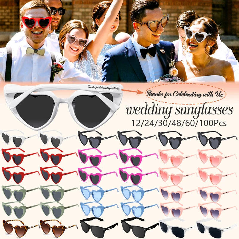 12-100Pcs Wedding Sunglasses Heart Shaped Sunglasses Wedding Bridal Shower Decor Bachelorette Hen Party Supplies Bridesmaid Gift