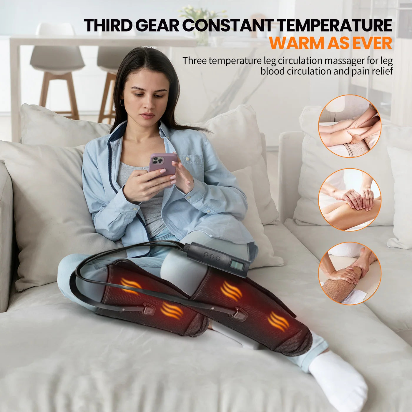 18W Electric Air Compression Calf Massager with Heating 3 Intensities 3 Tem Settings Leg Circulation Massager for Blood Circulat