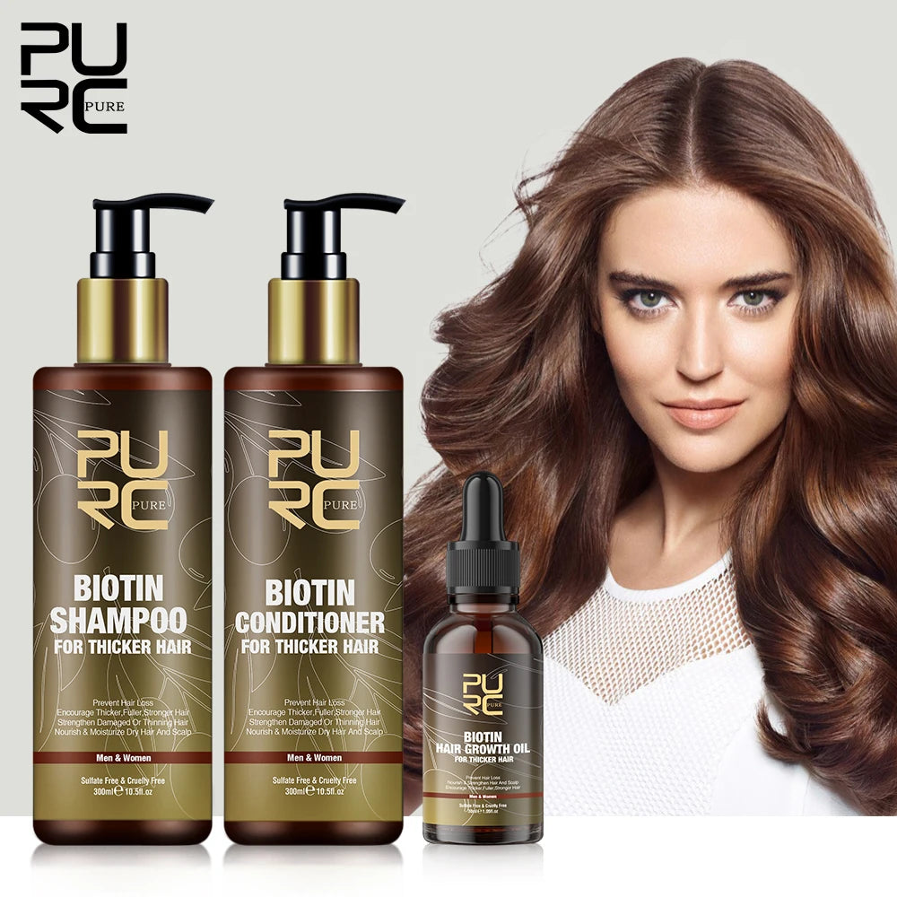 PURC Biotin Hair Growth Oil Shampoo Conditioner Sets Smoothing Anti-Hair Loss Scalp Treatment Hair Care Products for Men Women
