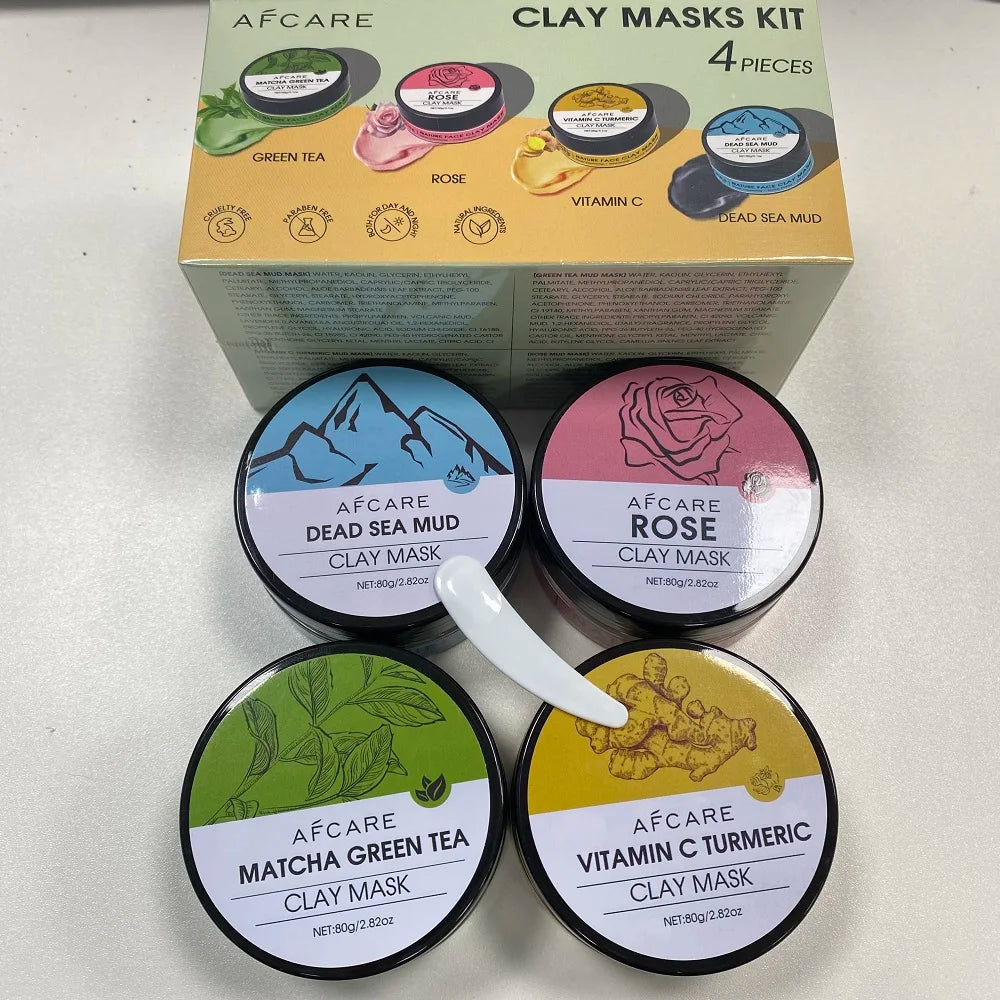 New 4Pcs Clay Mask Set Vitamin C Turmeric Clay Mask Dead Sea Mud Face Masks Skincare for Deep Cleansing Pores Moisturizing 320g