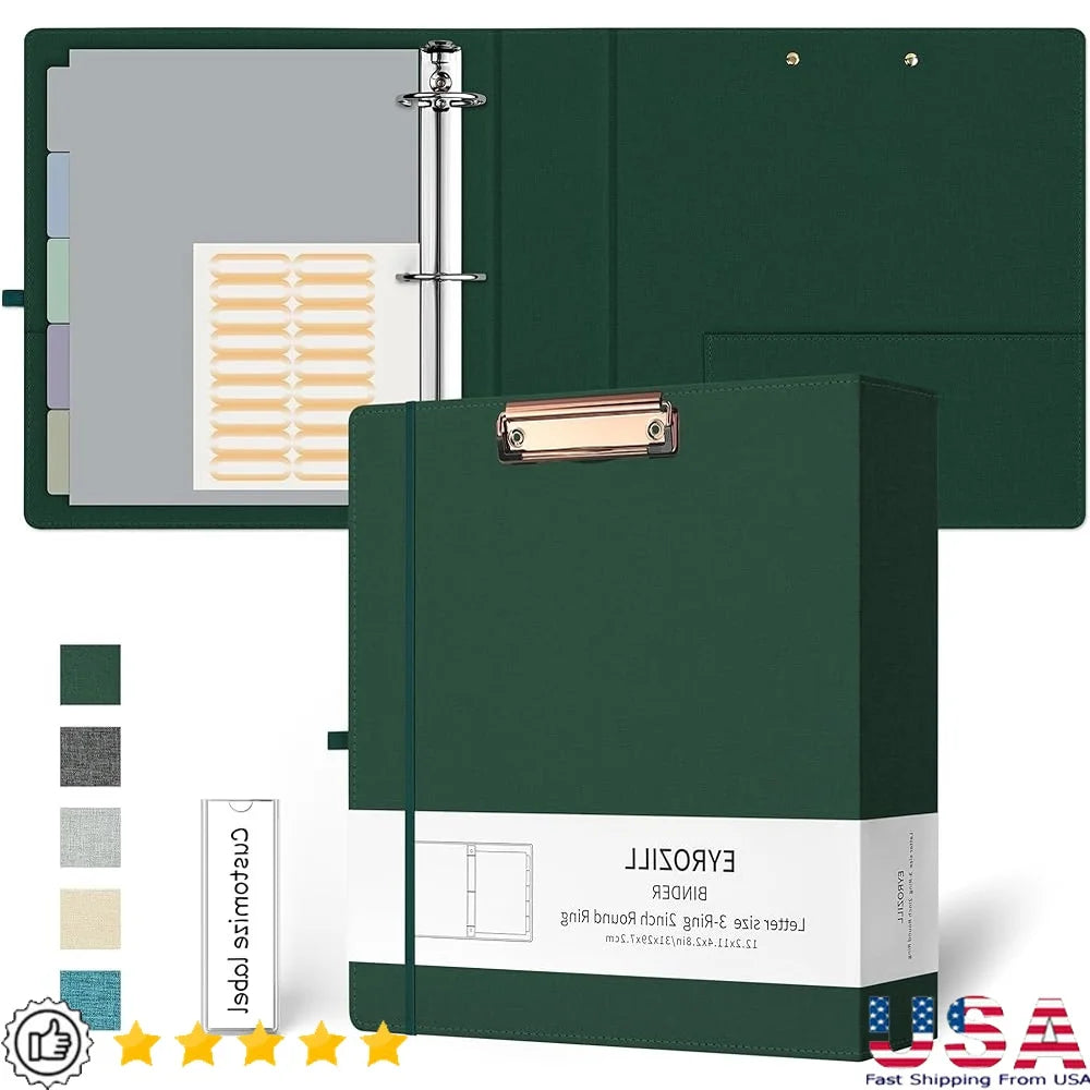 3 Ring Binder 2 Inch Clipboard with 5 Tab Dividers Self-Adhesive Labels Durable File Organizer Portable School Office Supply