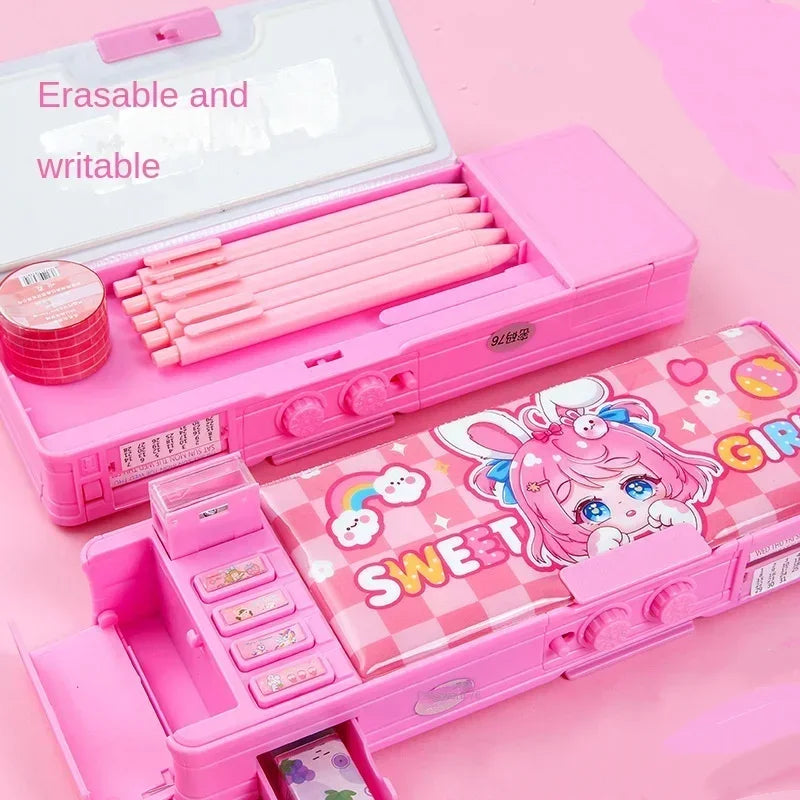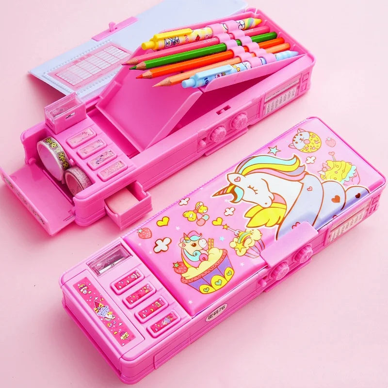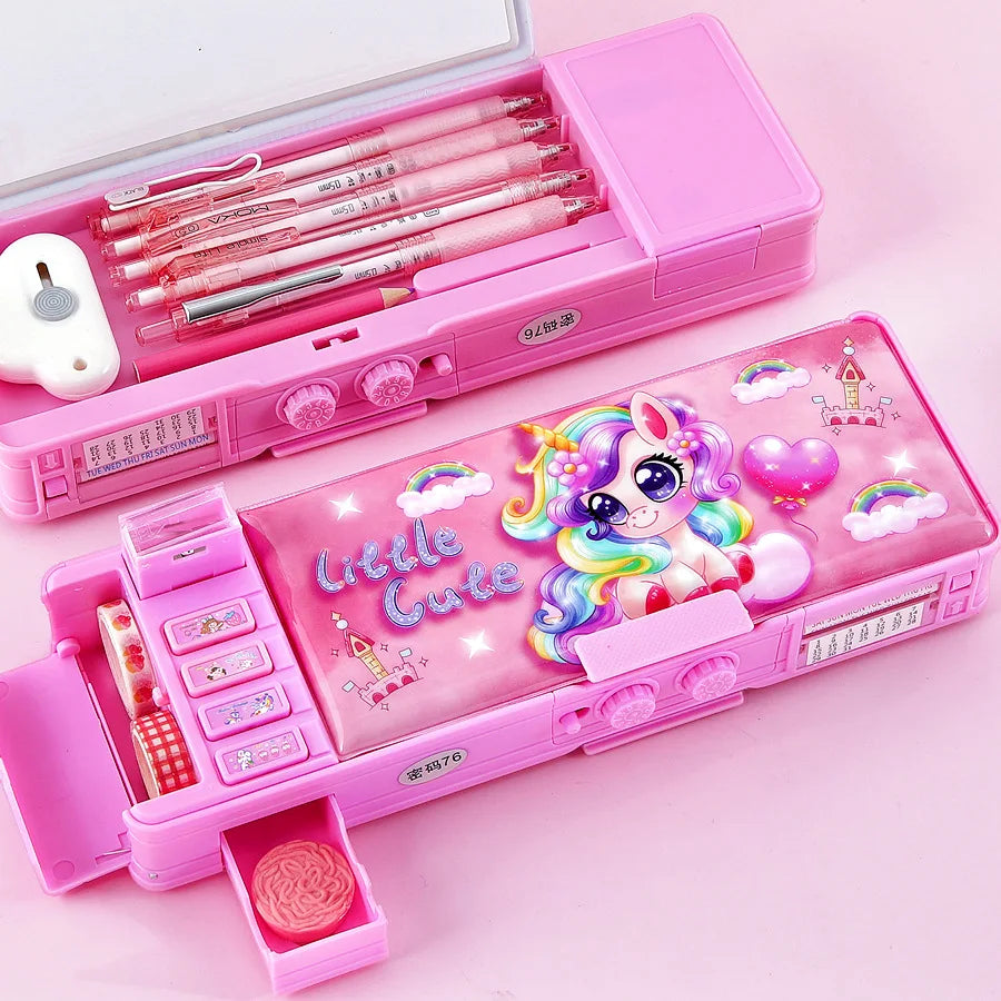 Multi Functional Stationery Box Smart Female Password Lock High Tech Pencil Case Mechanism Bilayer Girls School Students