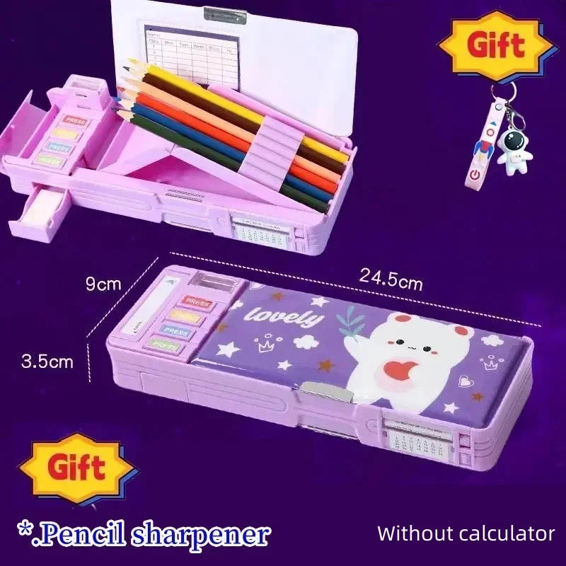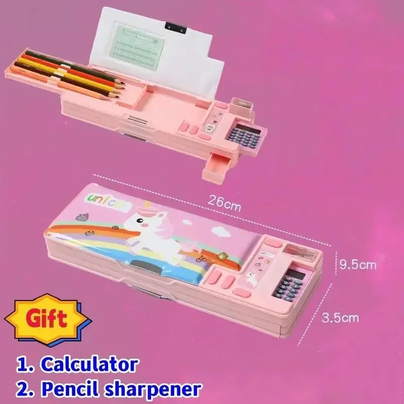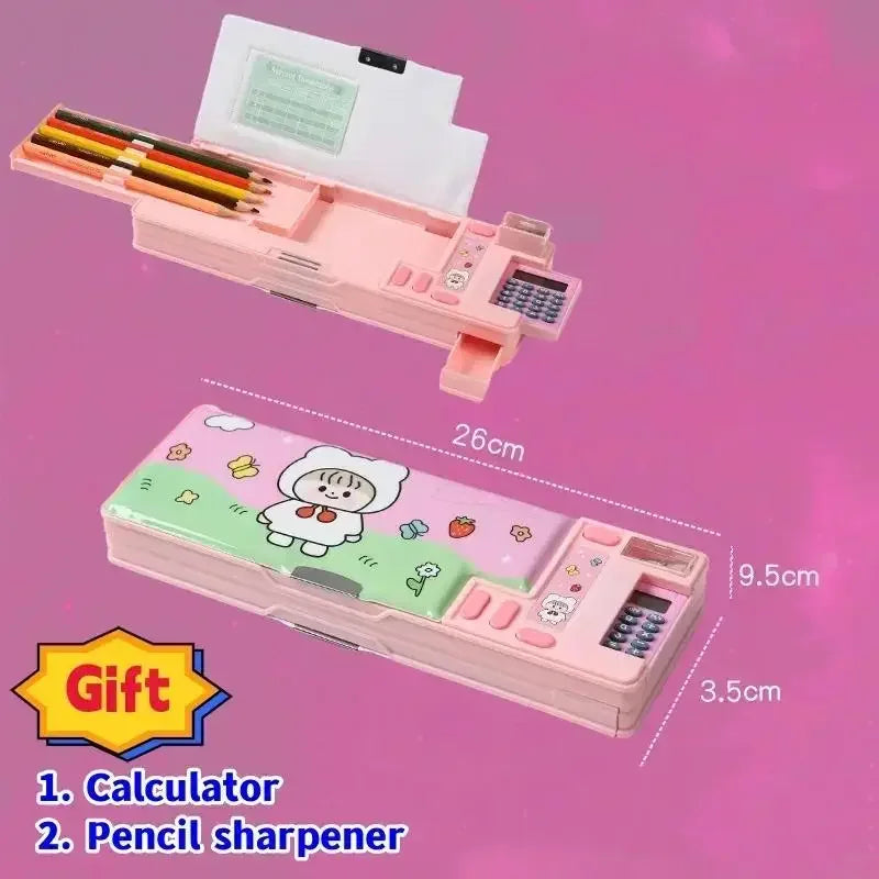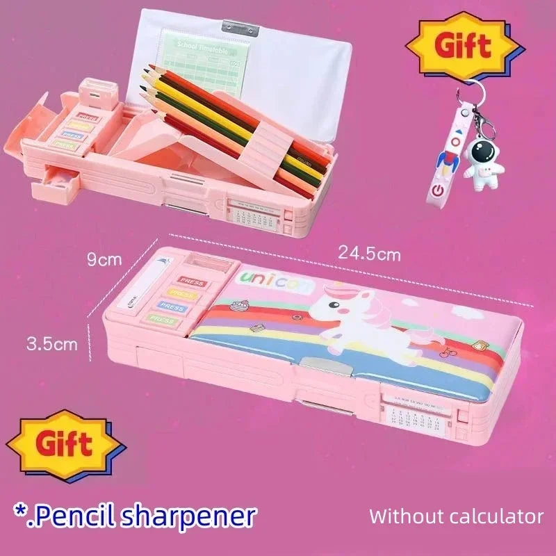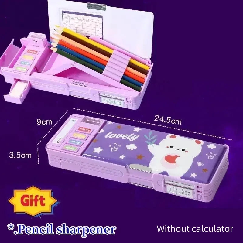 Creative Multi-functional Plastic Stationery Box for Primary School Students Double-sided Magnetic Pencil Calculator Sharpener
