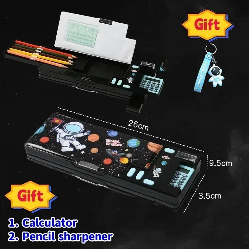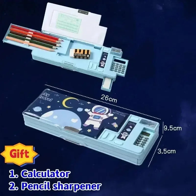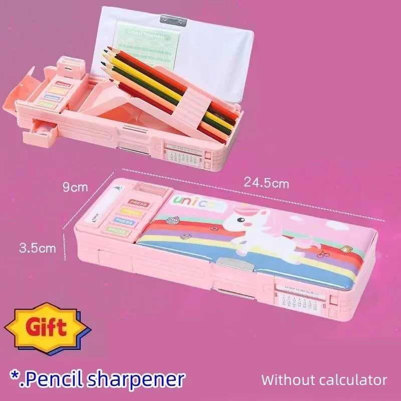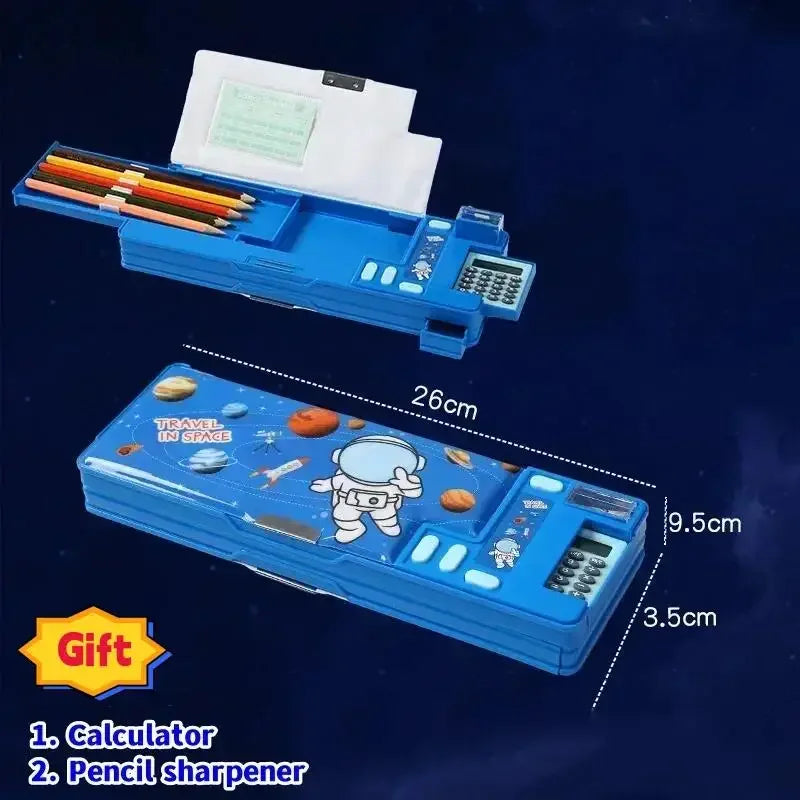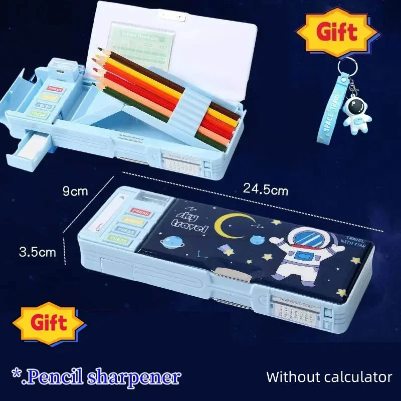 Creative Multi-functional Plastic Stationery Box for Primary School Students Double-sided Magnetic Pencil Calculator Sharpener