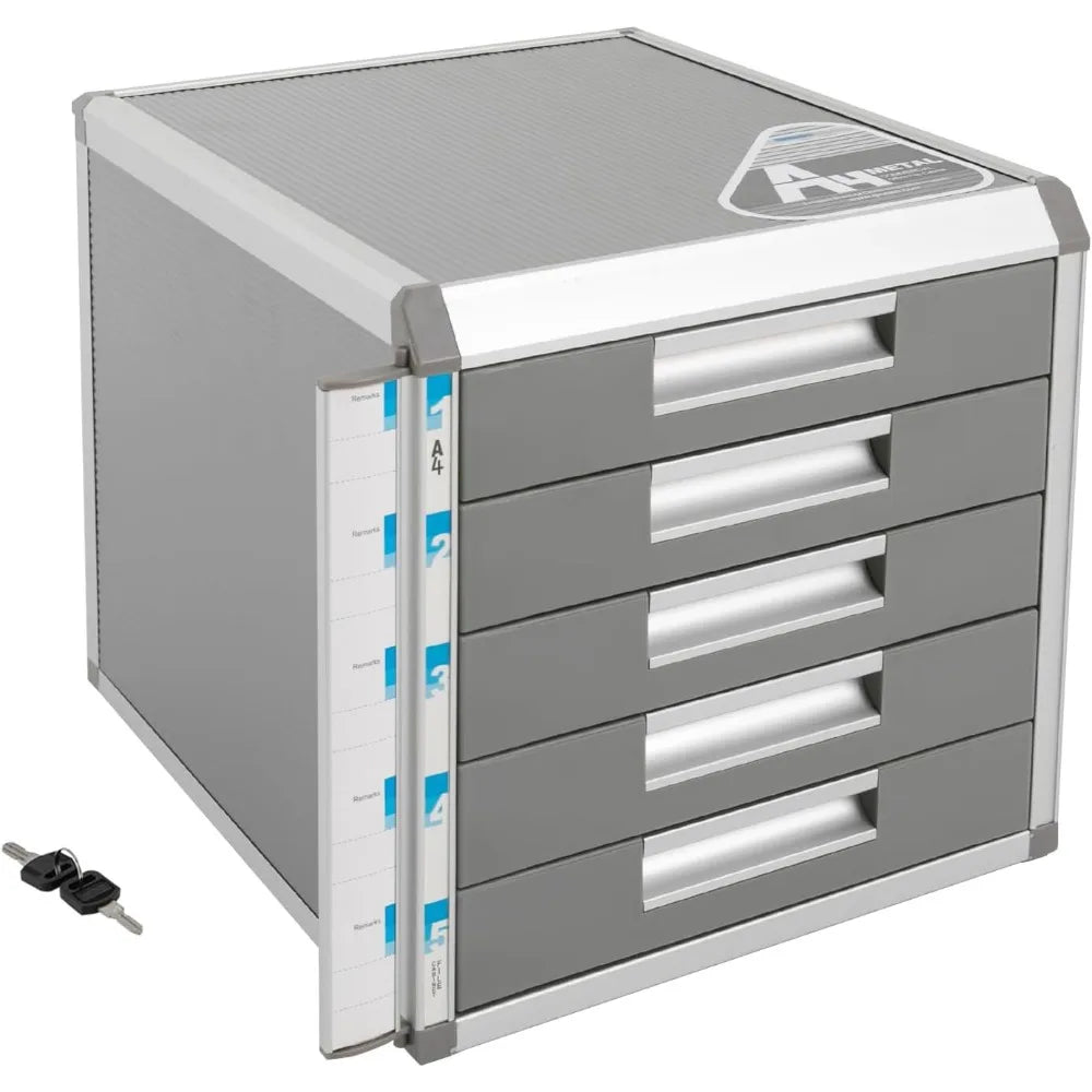 Desk Organizer with 5 Drawers Aluminum Alloy Desk Storage Box Lockable File Organizer for Office Supplies School Home