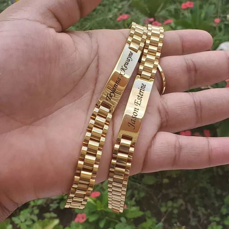Customized Male Name Bracelet Stainless Steel Gold Color Punk Jewelry Personalized Letter Nameplate Bangle Best Friend Gifts