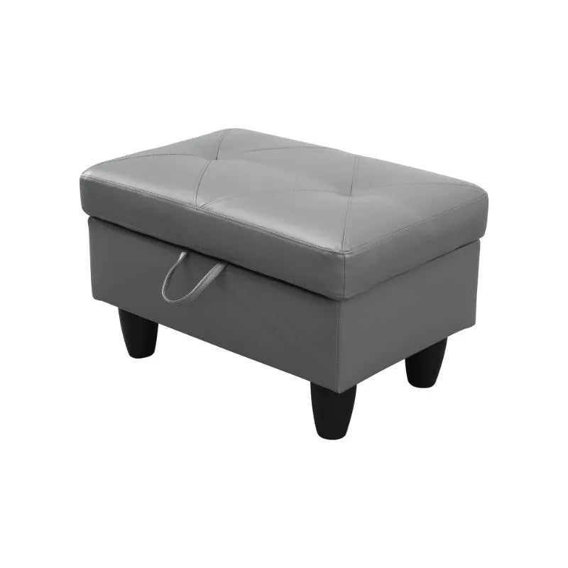 Dark Grey and Brown Semi PU Synthetic Leather Ottoman Living Room Sofa