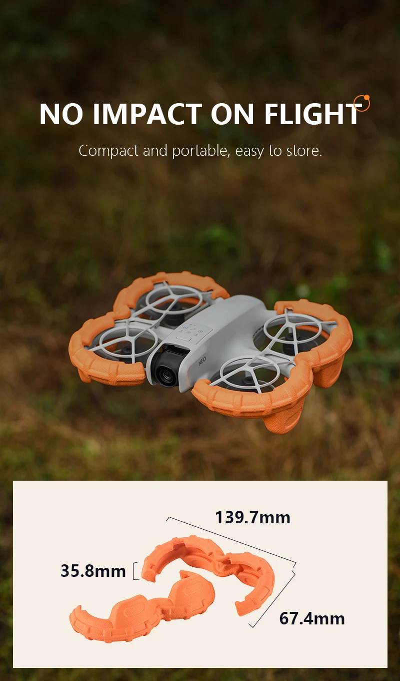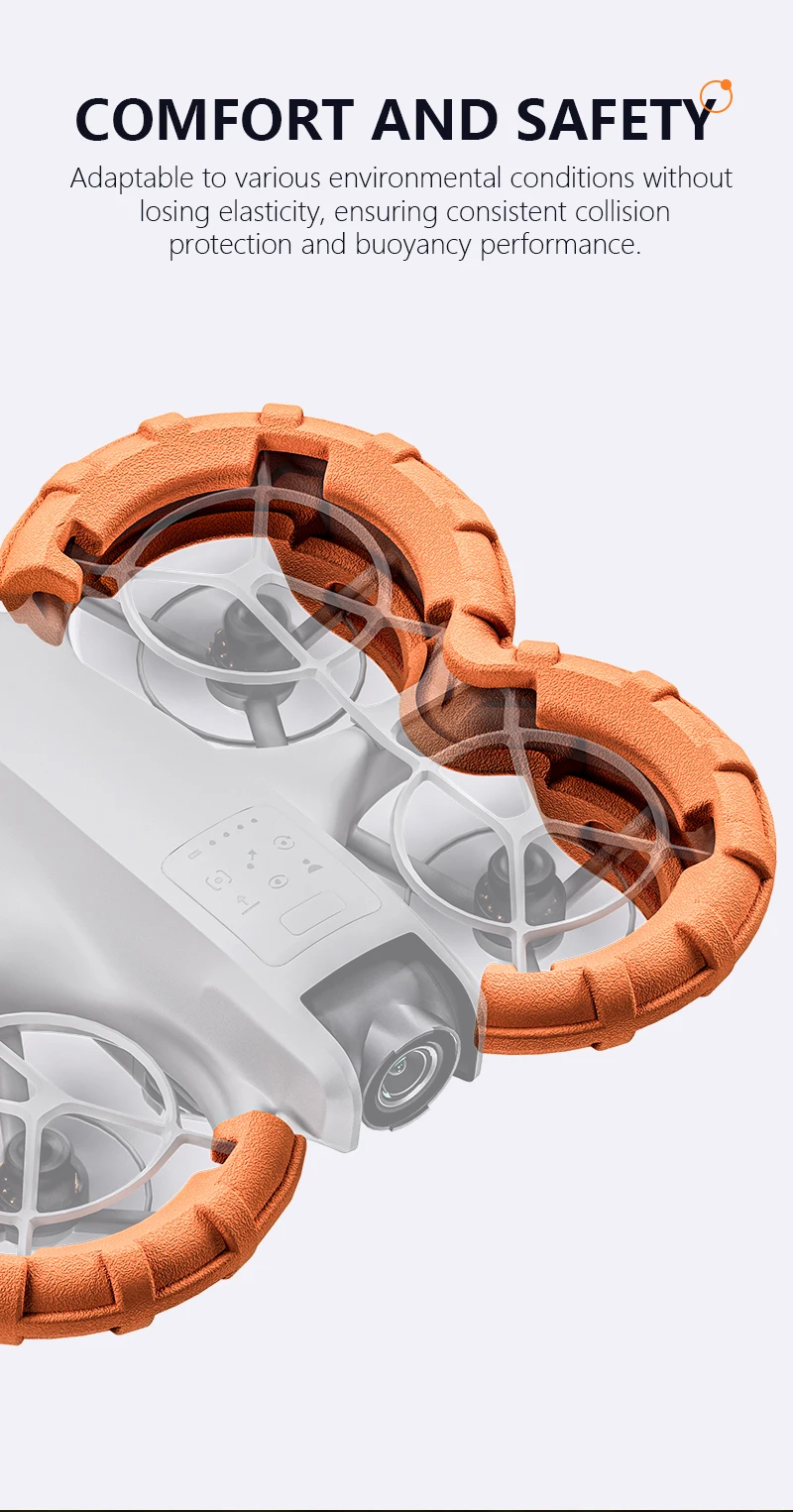 1. The buoyancy anti-collision ring designed specifically for DJI NEO drone propeller protector has precise mold opening, perfect fit, and sturdy design (requiring original propeller protector), providing cushioning and protection for DJI NEO propeller protector.
